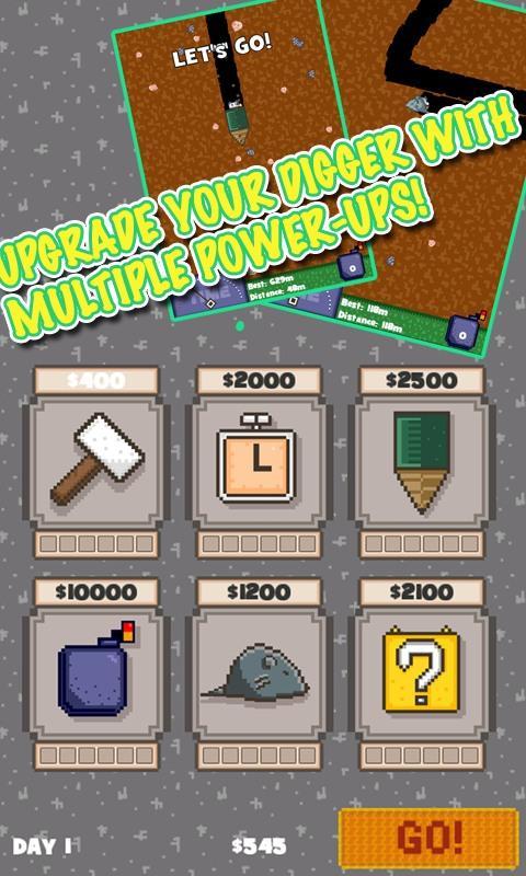 El juego es simple, pero desafiante. Simplemente toque la pantalla para cavar hacia abajo, deteniéndose en su camino para recoger los diversos minerales valiosos que encuentre.